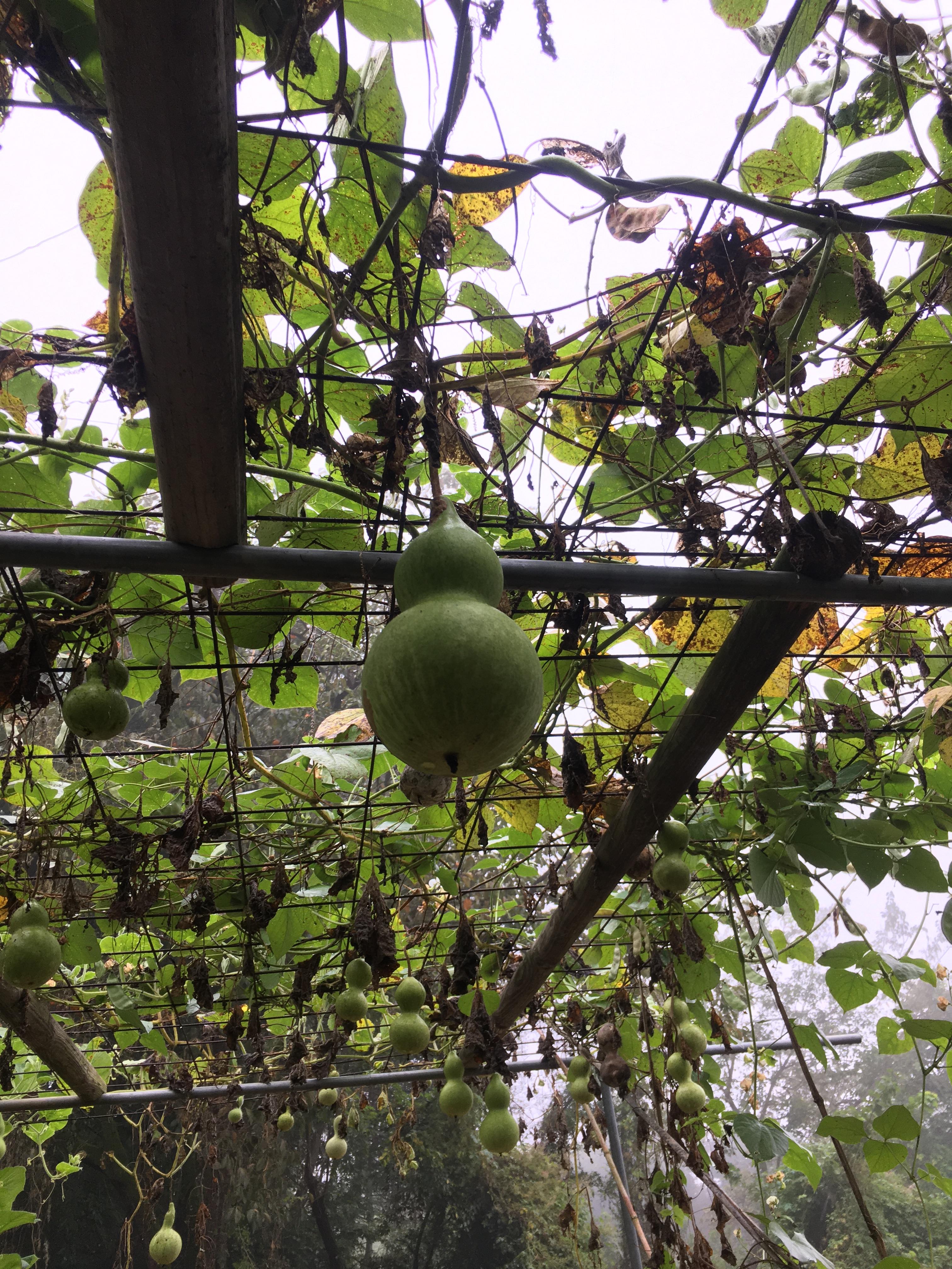 이제 추워져가면서 조롱박이 씨앗을 맺고 있는 것 같다. 아래 조롱박이 한참때의 모습이라면 그 아래 조롱박은 이제 씨앗을 받아 준비하라는 듯 푸석푸석한 모습으로 힘겹게 걸려 있다. 터널 아래를 지날 때 맞지 않도록 해야할 듯 하다.